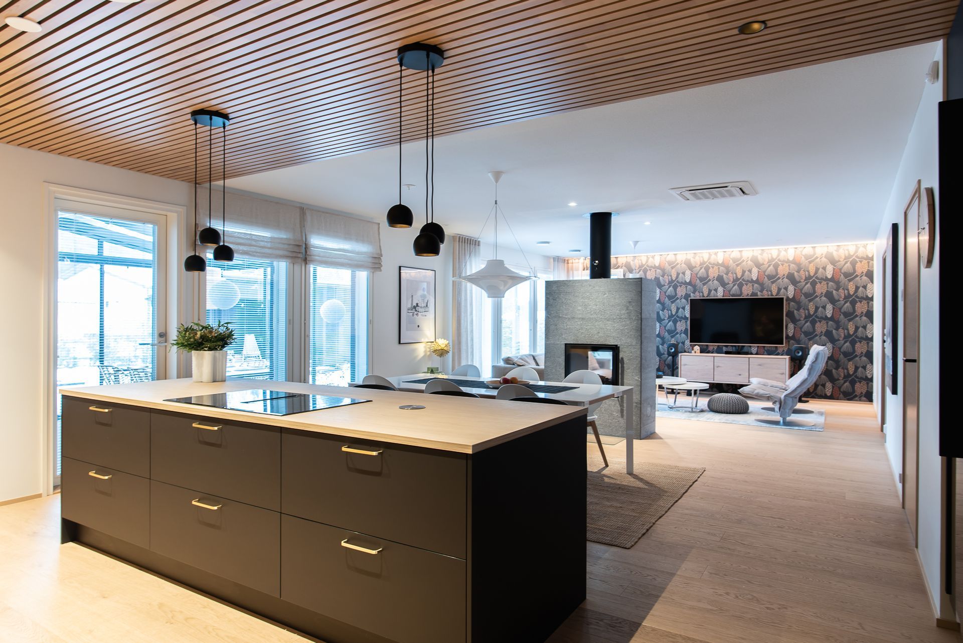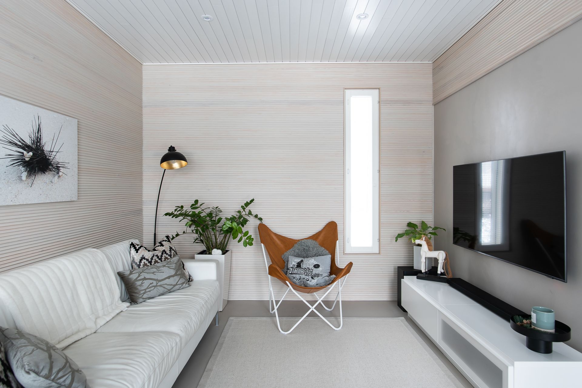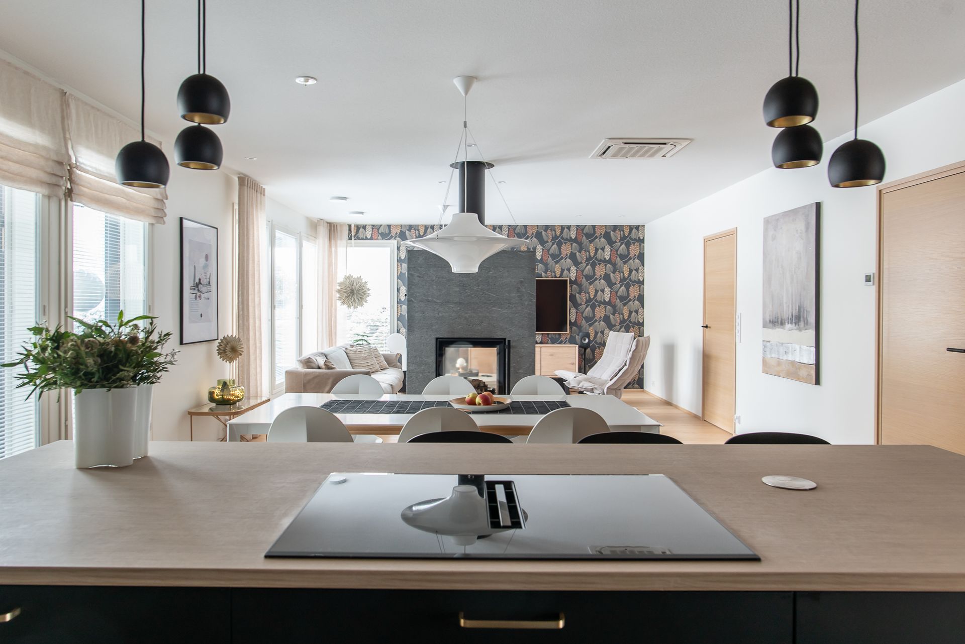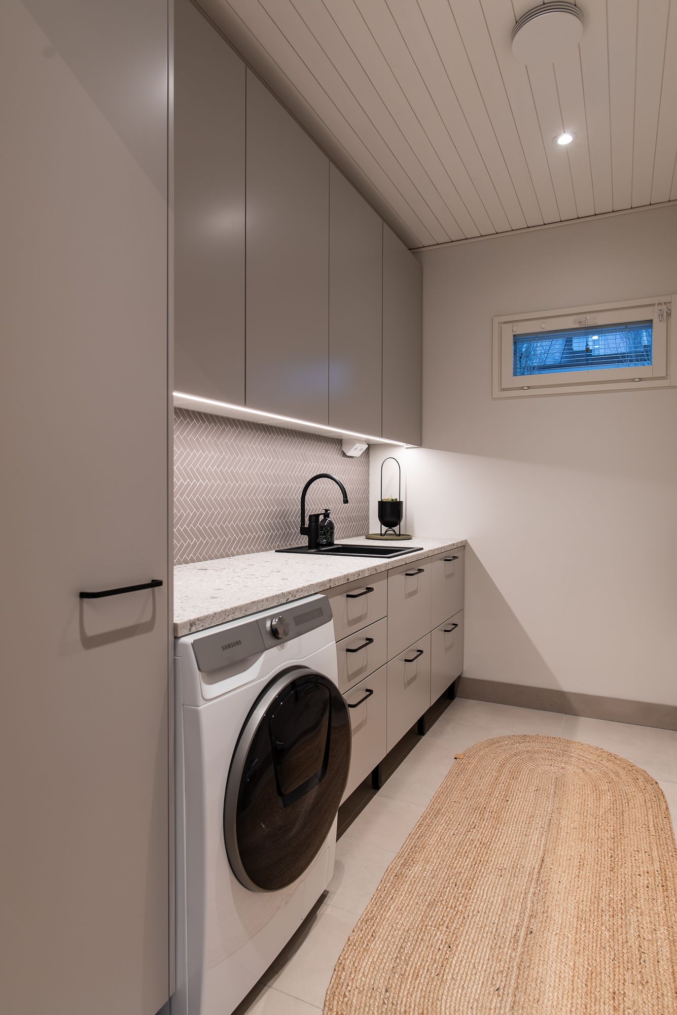 Vanhan 1900-luvun alkupuolella rakennetun puutalon kylpyhuone uusittiin täydellisesti remontissa. Toiminnot pysyivät entisillä paikoillaan, mutta tarkalla mitoituksella ja oivaltavalla kalustesuunnittelulla tilaan saatiin avaruutta ja lisää työtilaa. Rohkeat värit ja kuviot sopivat talon tyyliin ollen samalla arkea piristävä tekijä.